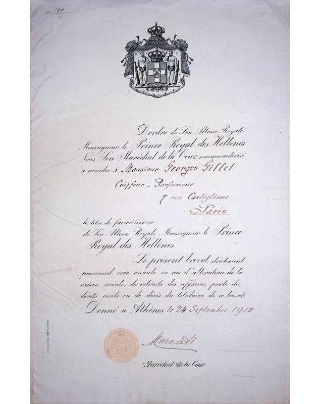 Appointment royal 1912 - Maréchal de la Cour Mercati - Fournisseur de Son Altesse Royale de Grèce