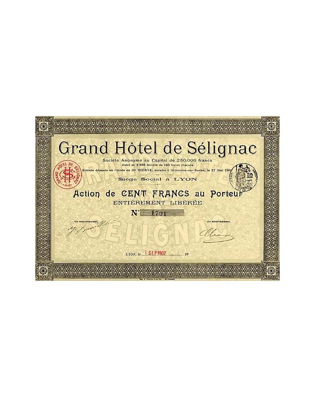 Le bâtiment fut racheté par un commerçant lyonnais, Joseph Bouillat (dont la signature est sur le titre), déjà propriétaire du restaurant Emile et négociant en vin.