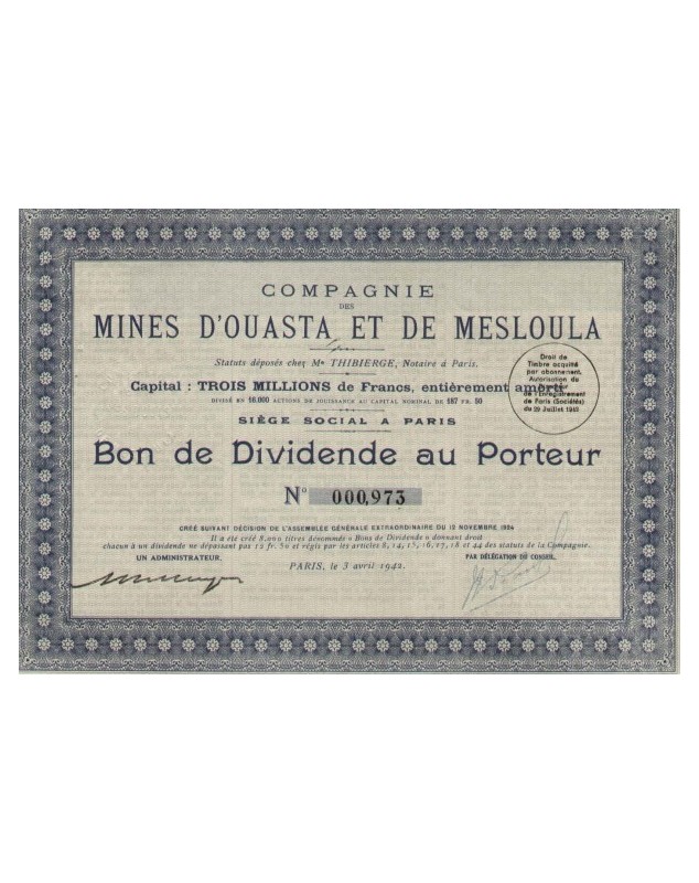 Zinc and lead mines: Mesloula in the district of Constantine and Ouasta in the district of Guelma.