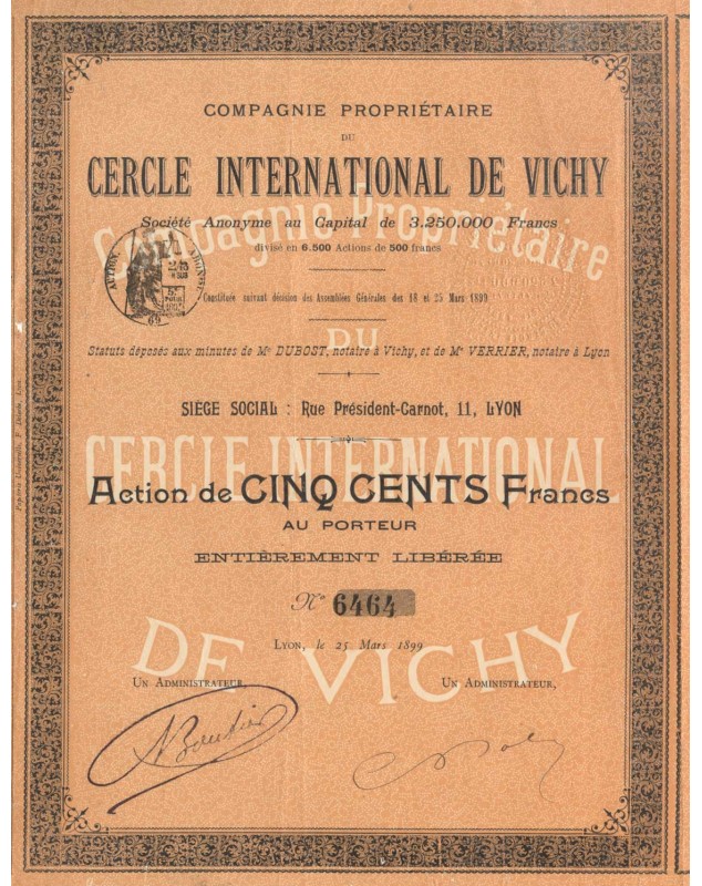 From 1875 to 1881, the Compagnie fermière, which was looking for a way to finance horse racing, had opened a "Cercle des Courses" at the first floor of the thermal establishment. Jurietti, as a shrewd businessman, circumvented the necessary administrative authorizations by reaching an agreement with the Cercle de Vichy, which then became Cercle International. It was the start of a meteoric rise.