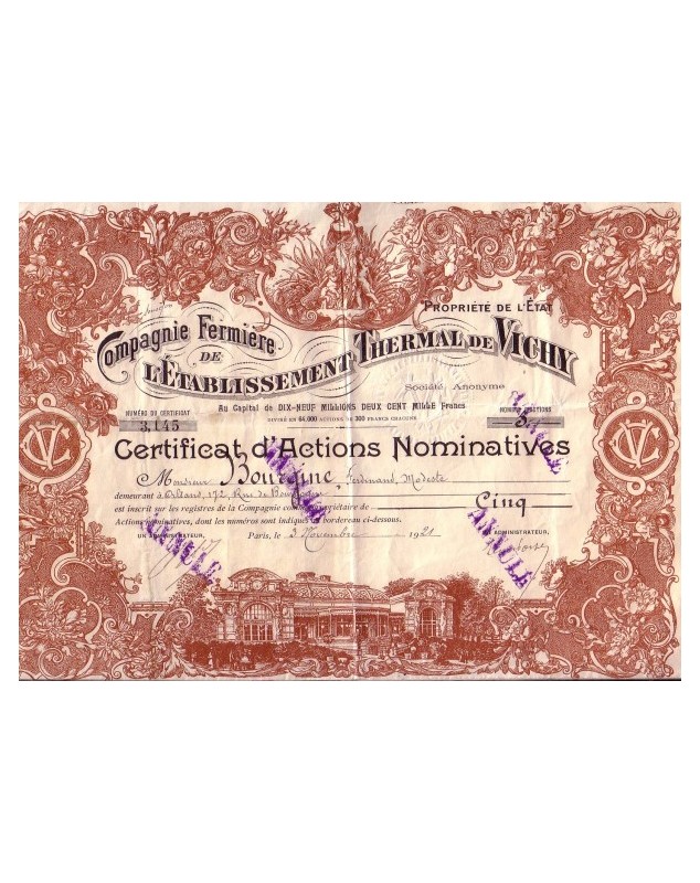 Compagnie Fermière de l'Etablissement Thermal de Vichy. Property of the state