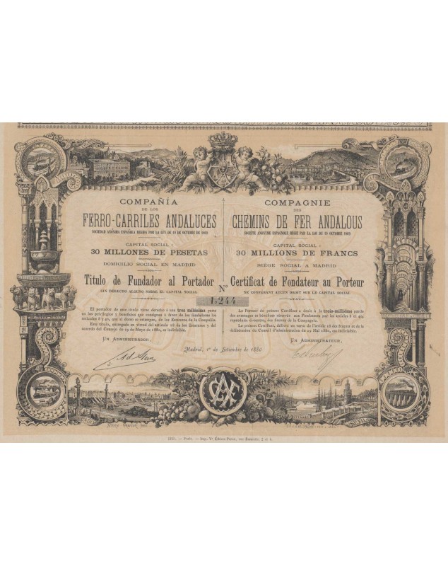 Cie des Chemins de Fer Andalous - Cia de los Ferro-Carriles Andaluces. 1880