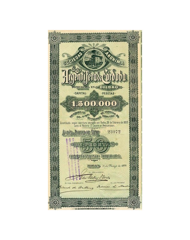 Share of 50 Pesetas - Bilbao 1899