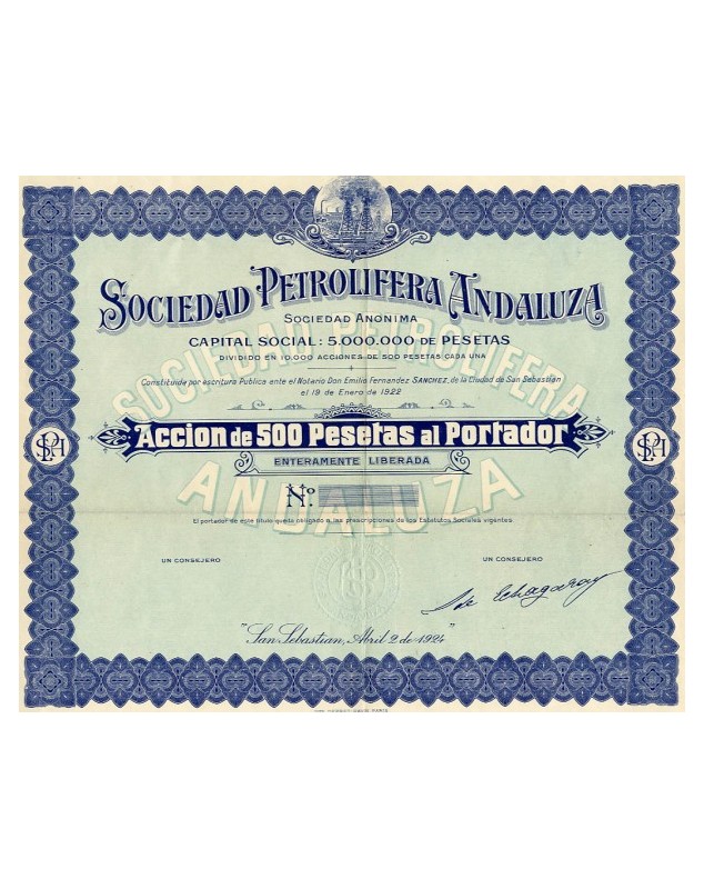 Share of 500 Pesetas - San Sebastian 1924, Unissued