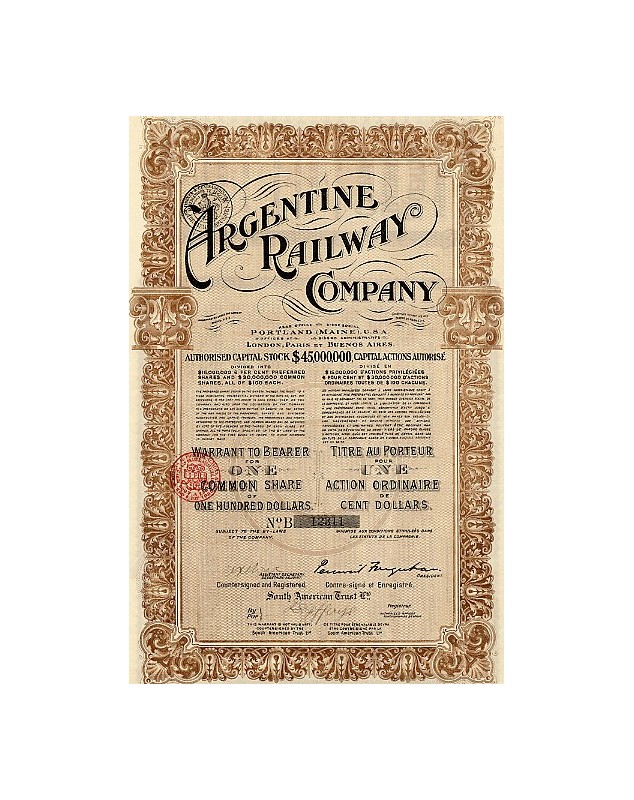 Certificate of 1 Ordinary share of $100 - Portland (Maine, USA)