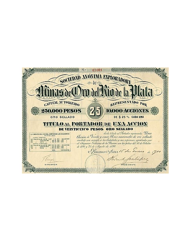 Share of 25 Pesos gold - Buenos Aires 1900