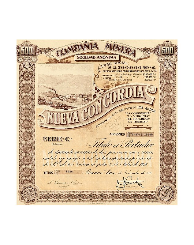 50 shares of 10 Pesos ea. - Buenos Aires 1910