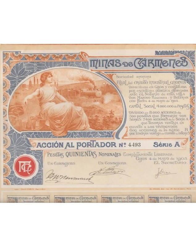 Share of 500 Psts Série A - Gijon 1903 (Asturies)