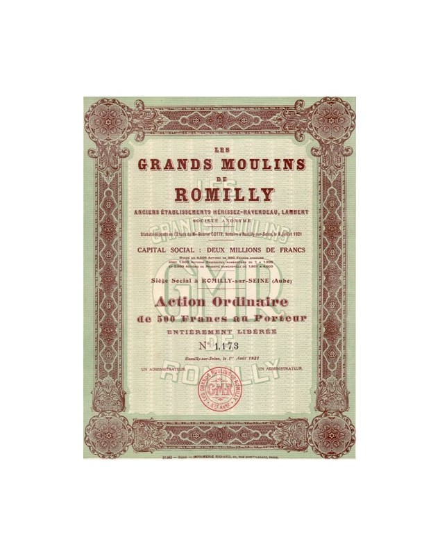 Ordinary Share 500F - Romilly-sur-Seine (Aube) 1921