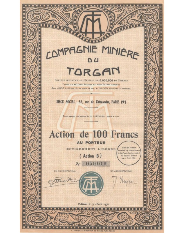 Compagnie Minière du Torgan. 1930