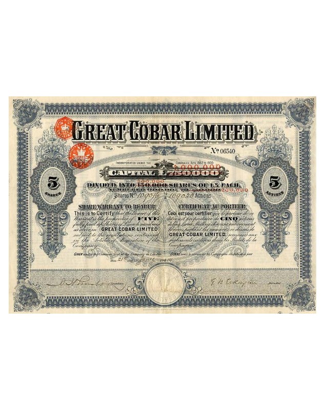 Certificate of 5 shares of 5£ each - London 1914/1910