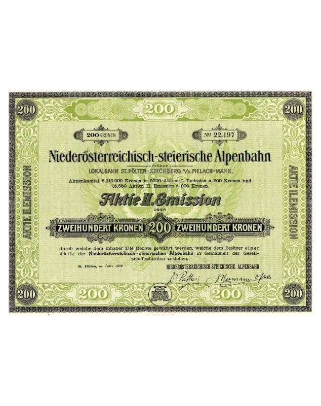 Share of 200 Kronen, 2nd Issue - Pölten 1908