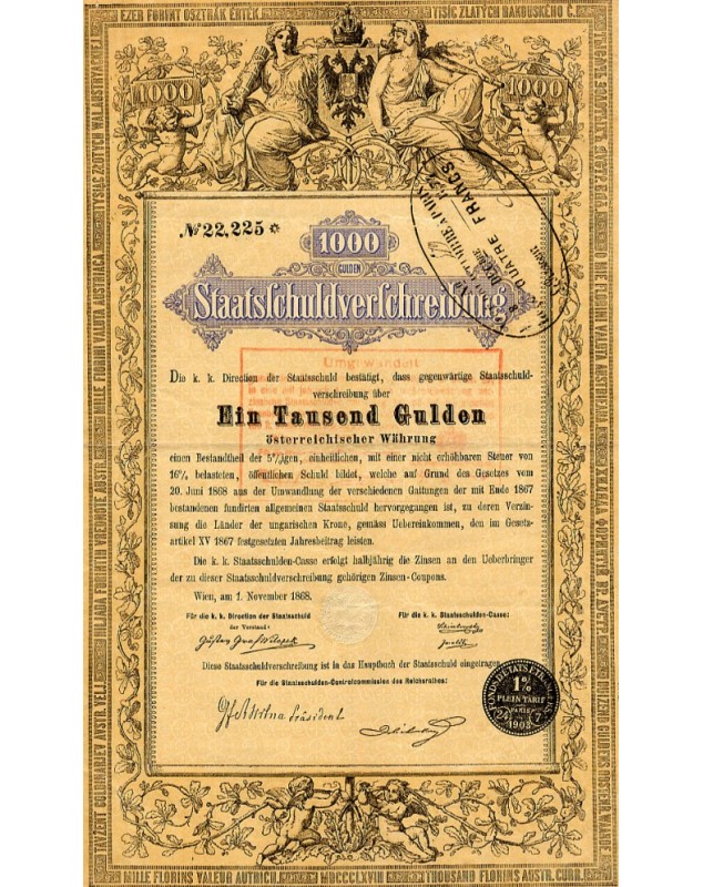 Bond of 1,000 Florins - Wien 1868