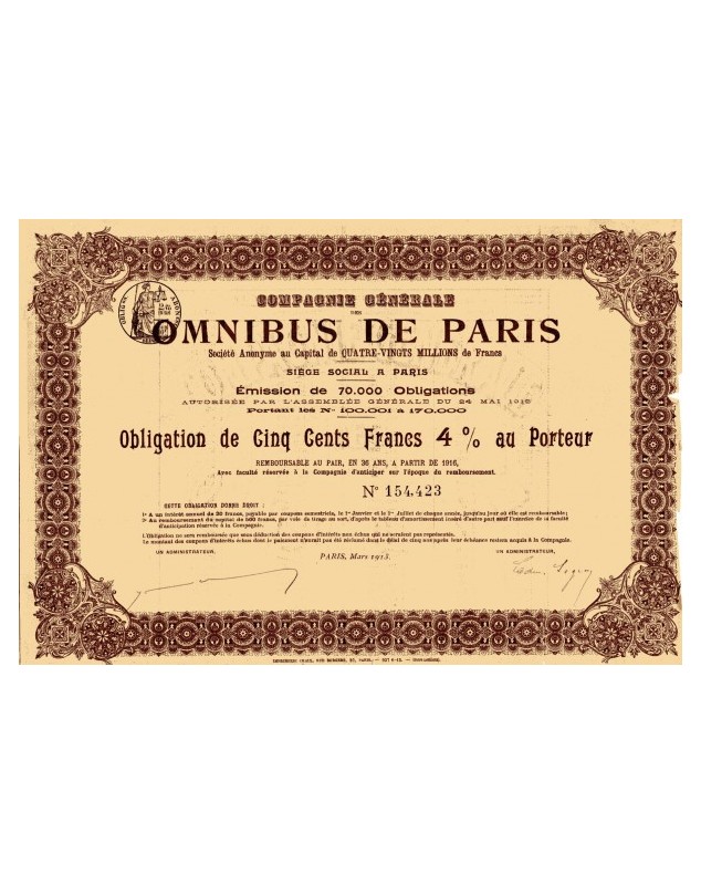 4% bond of 500 francs to bearer issued in Paris in 1913.