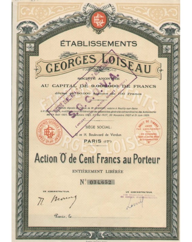 With a stamp of "SOCOVA" which took over the Loiseau Co.
