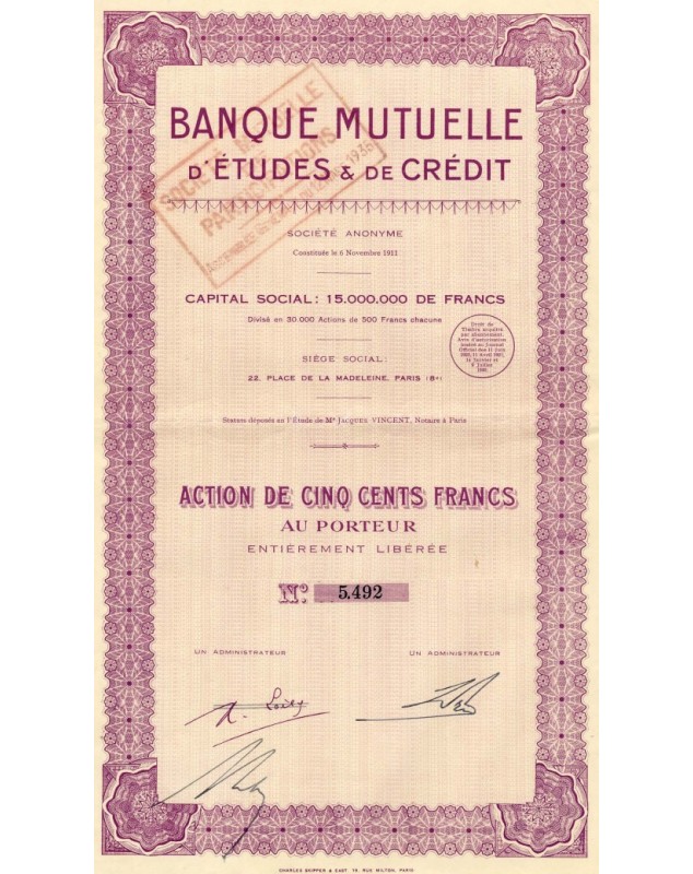 Share of 500F - Paris 1930