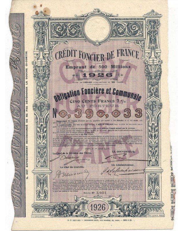 Crédit Foncier de France - 500 Millions Loan 1926