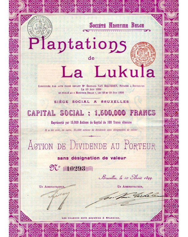 Company founded in 1899 with a capital of 1.5 million of francs (issue of 15.000 shares).