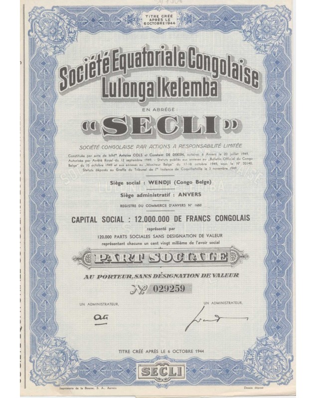Congolese company founded in 1949 with registered office in Wendji and administrative headquarters in Antwerp, Begium.