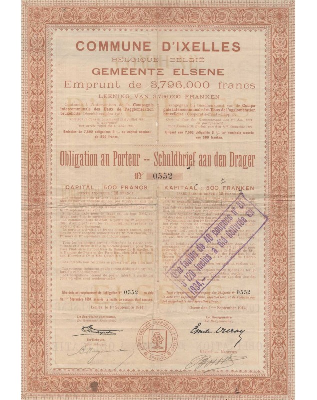 Bond of 500F - Ixelles 1914