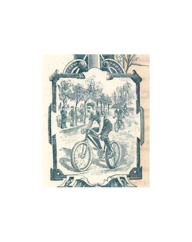 Beautiful illustrations of cyclists and the start of a bicycle race. Coat of arms of Bordeaux.
