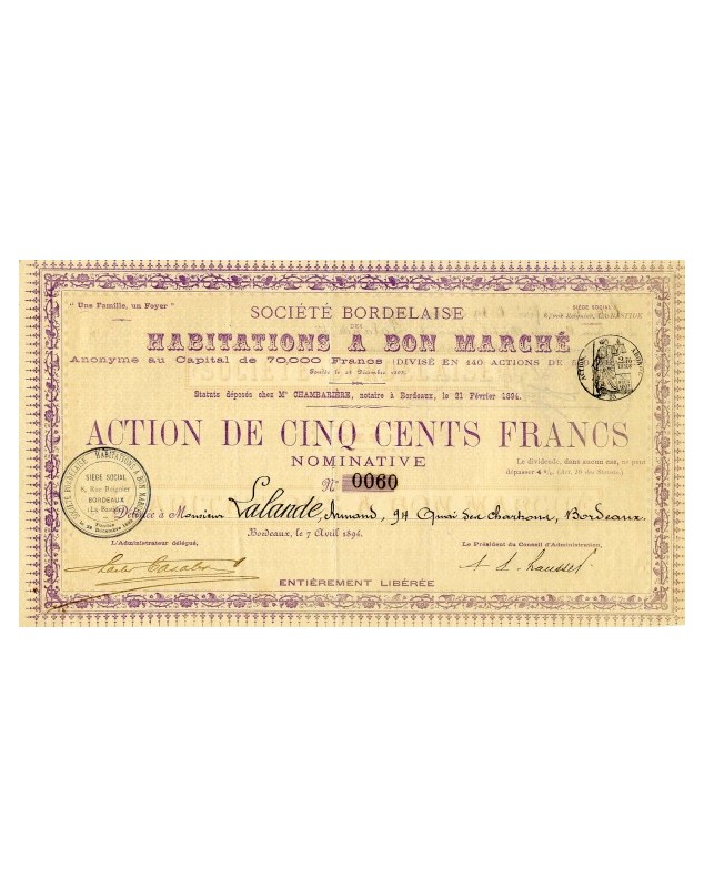 Share of 500F - Bordeaux 1894. Rare (140) and signed by Cazalet