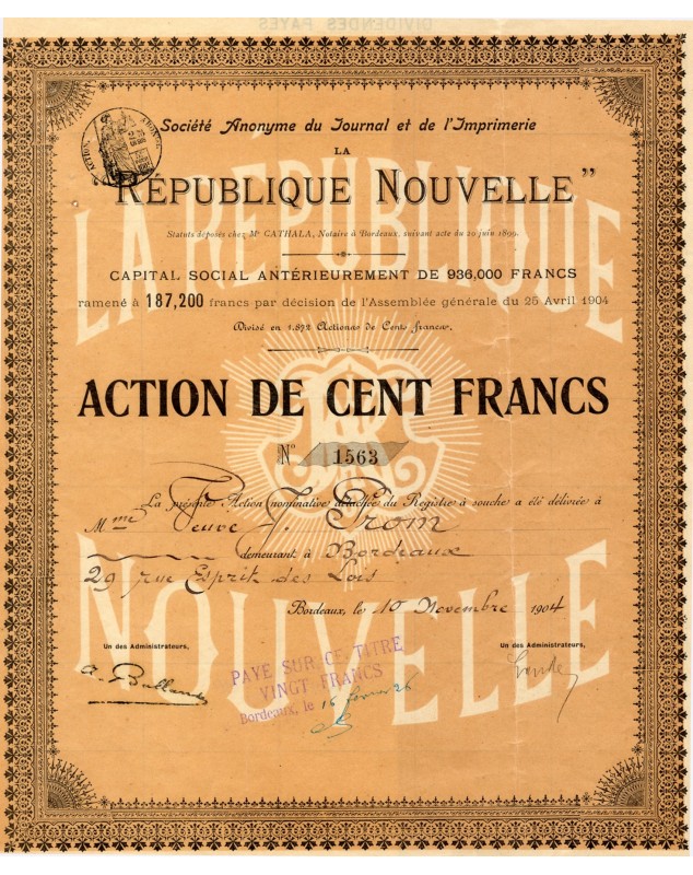 Sté du Journal et de l'Imprimerie La République Nouvelle