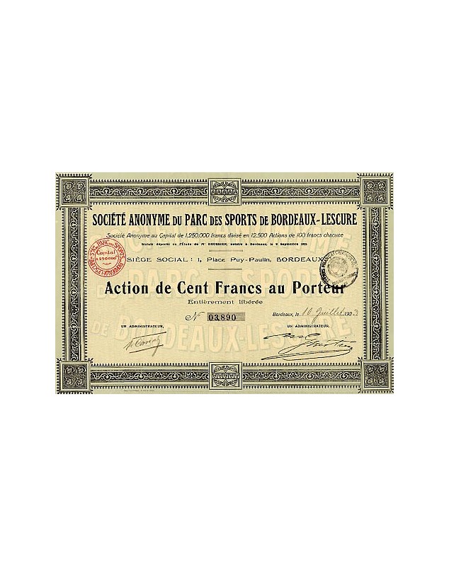 Share of 100F - Bordeaux 1923