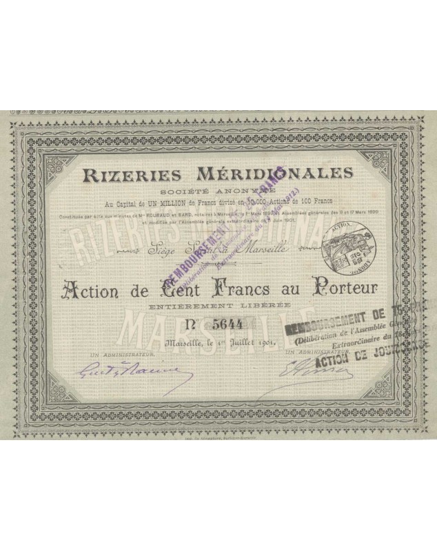 The Rizerie Cattanéo merges with the Society of Rice Farms of the Midi, Bergasse & Francou in 1899 in Marseille.