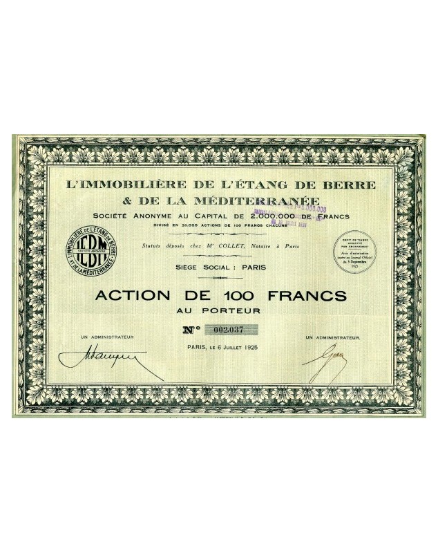 Bouches du Rhône 13 Comité de Fondation pour l'Etablissement d'un Port à l'Etang Berre, Association en participation€120.00