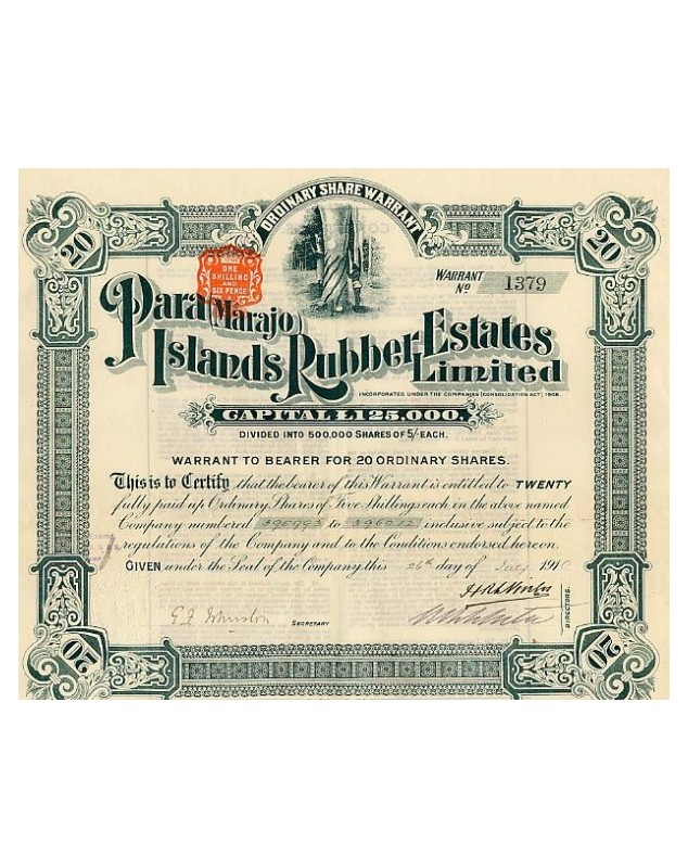 Certificate of 20 shares of 5 shares each issued in 1910.
