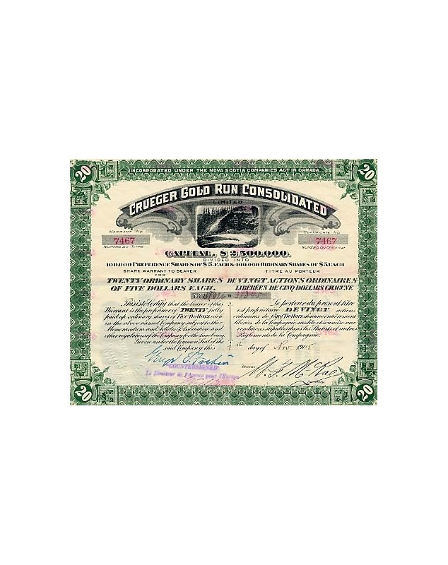 Certificate of 20 Shares of 5$ - Nova Scotia 1905