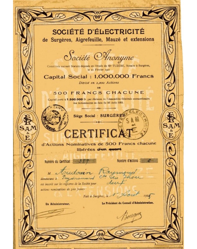 Sté d'Electricité de Surgères, Aigrefeuille, Mauzé et extensions
