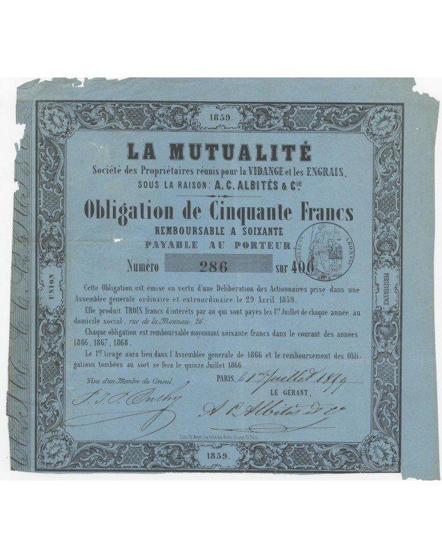 La Mutualité, Sté des Propriétaires Réunis pour la Vidange et les Engrais A.C. Albitès & Cie