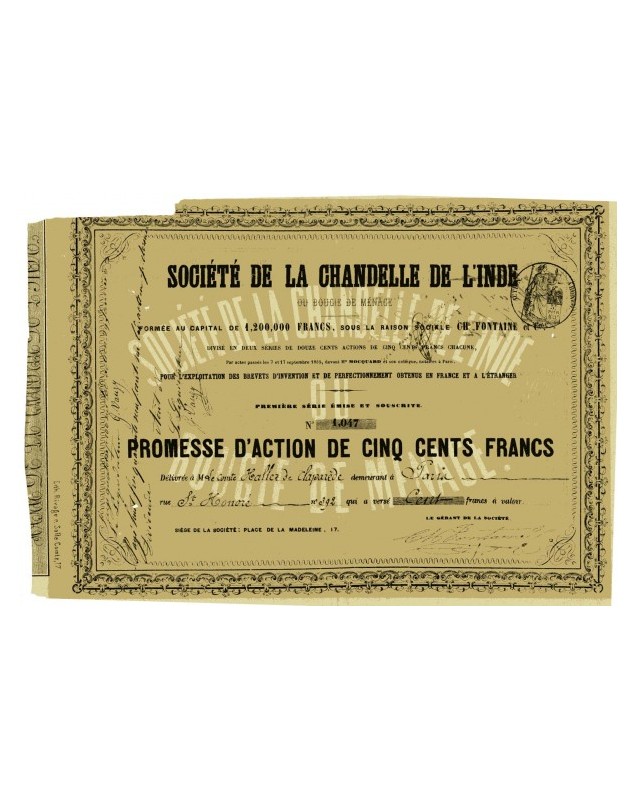 Company founded in 1855 by Charles Fontaine, whose signature appears on the share.