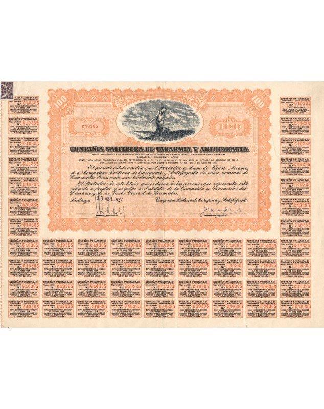 Certificate of 100 Shares of 50 Pesos each - Santiago 1937