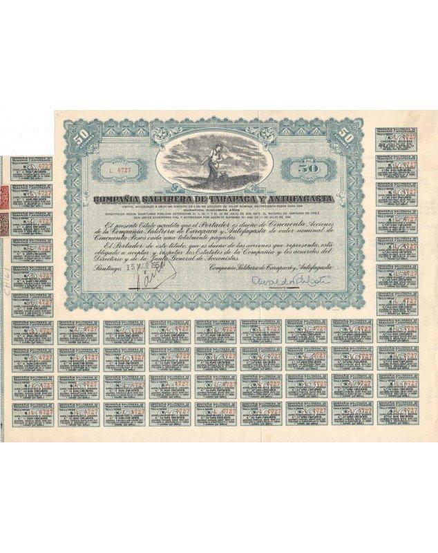 Certificate of 50 Shares of 50 Pesos each - Santiago 1954