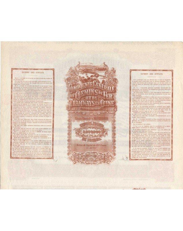 With stamp dated 1939 of new name : Compagnie Générale de Chemins de Fer en Chine.