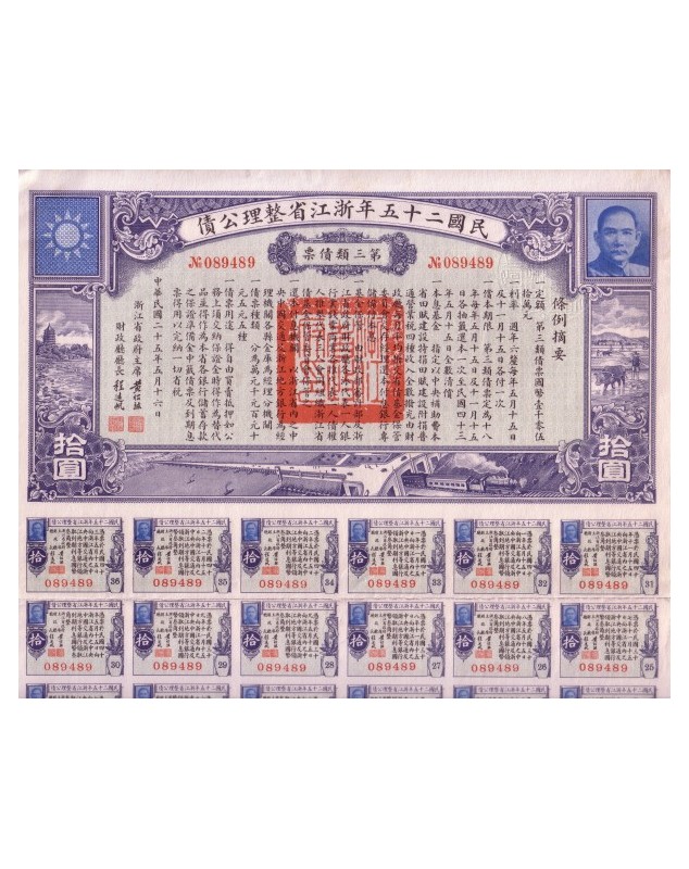 6% Bond of 10 Yuan - 1936