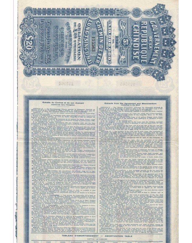 Lung-Tsing-U-Haï Railway - Government of the Chinese Republic - Gold Loan 5% ("Super Petchili")