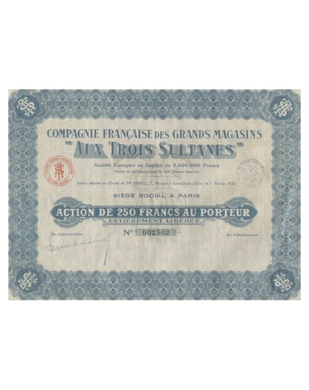 Cie Française des Grands Magasins "Aux Trois Sultanes"