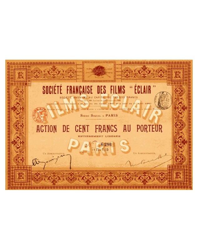 Share of 100 francs issued in Paris in 1909.