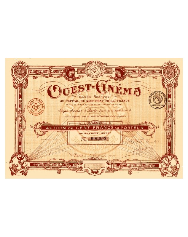 Share of 100F - Paris 1919
