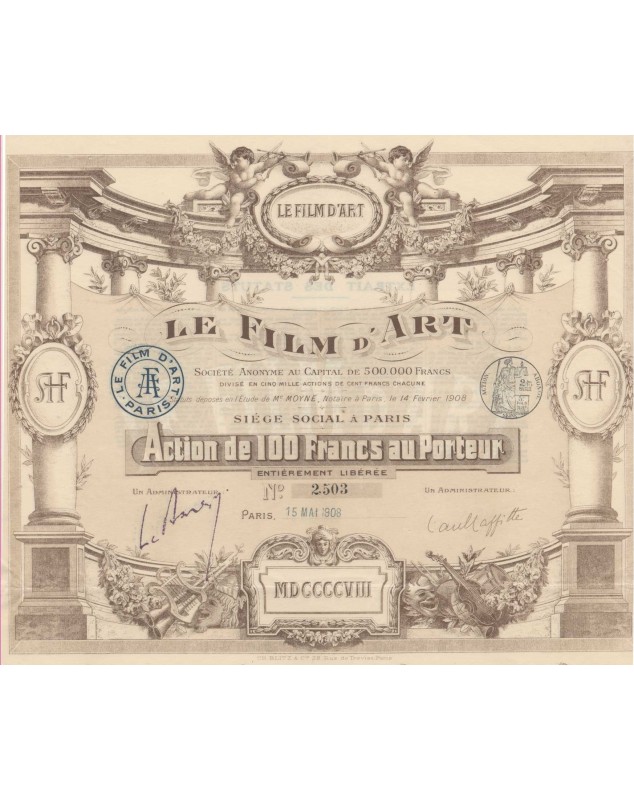 Le Film d'Art is a production company founded in 1908 by Paul Laffitte, at the request of the members of the Comédie-Française to ensure the production on screen of historical, mythological or theatrical scenes filmed from authentic and renowned adaptations. . At the time of the development of the cinema, the public turns away from the theater and the opera.