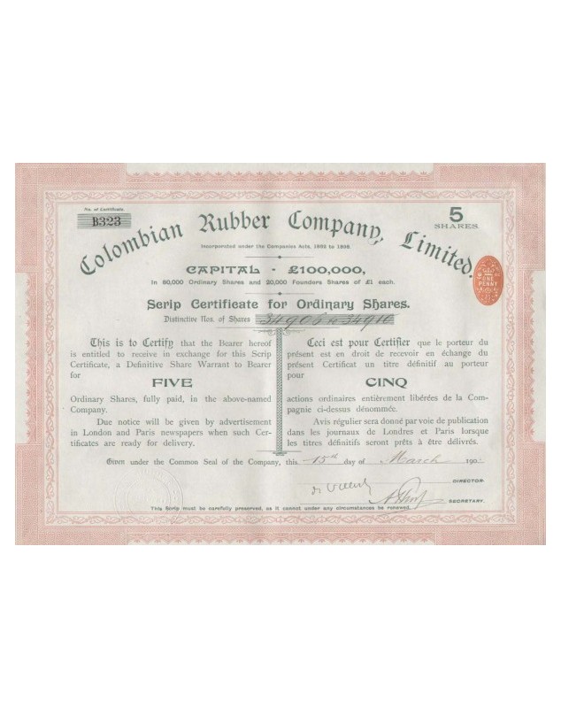 Scrip cert. for 5 Ordinary Share Cert. of £1 each - London