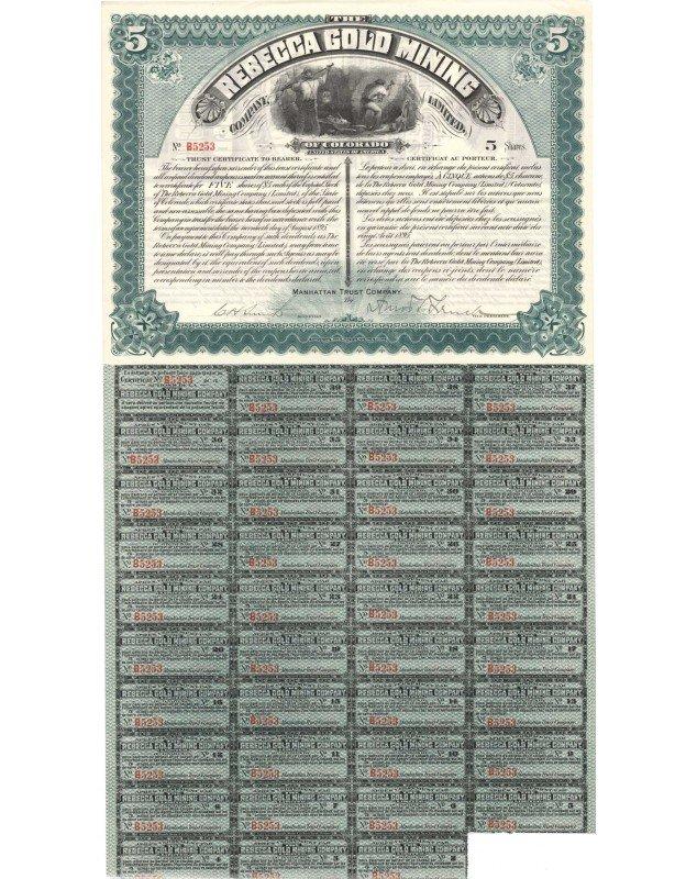 Certificate of 5 Shares of 5$ each issued in Colorado in 1896.