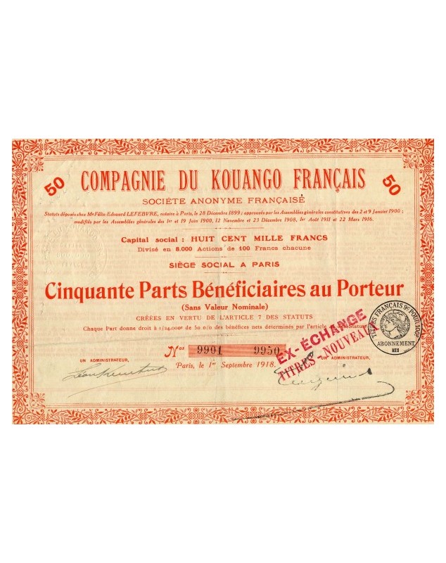 AEF (French Equatorial Africa) Compagnie Française du Haut & Bas-Congo, S.A. Agricole, Industrielle & Commerciale de l'Afrique Équatoriale€50.00