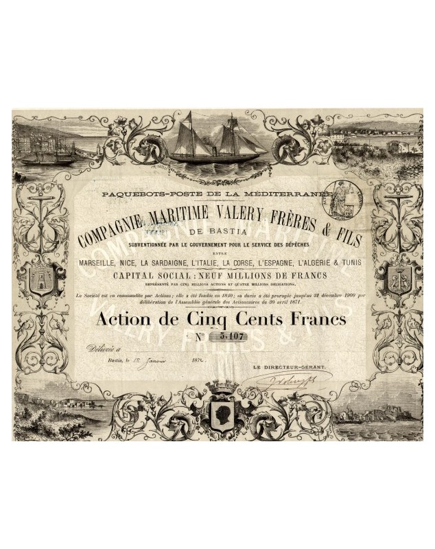 Share of 500 francs issued in Bastia in 1872.