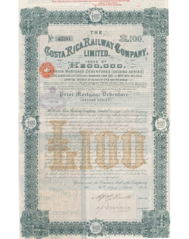 The Costa Rica Railway Company - Prior Mortgage Debenture (Second Series)
