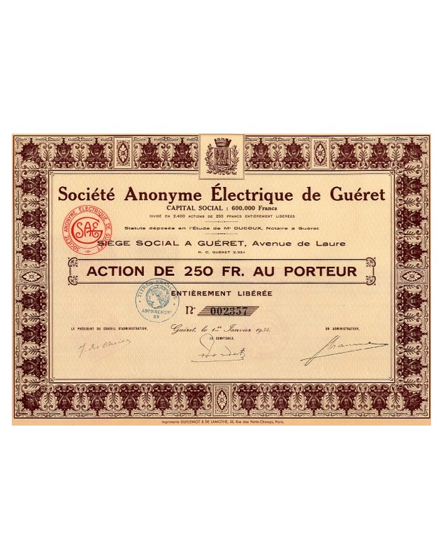 Share of 250F - Guéret 1934